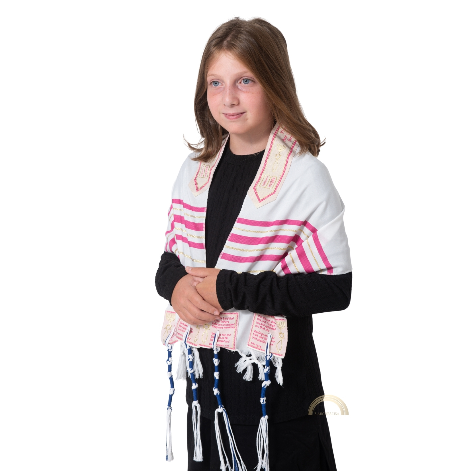 The Blessing Tallit Prayer Shawl For Children Christian – Small Tallit with Aaronic Blessing & Messianic Symbols