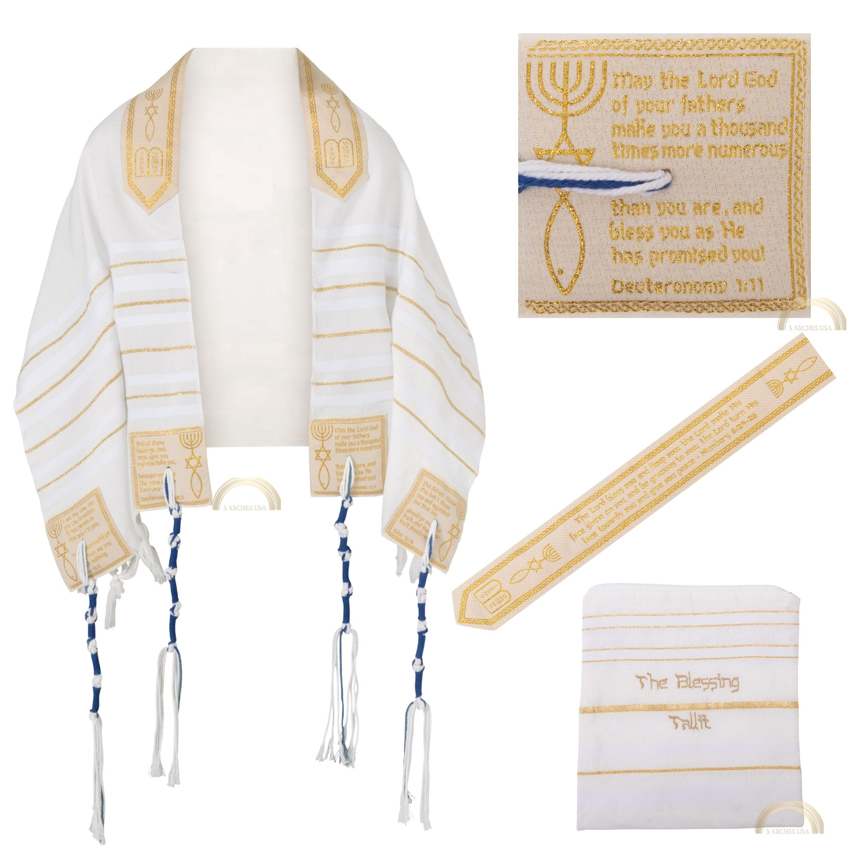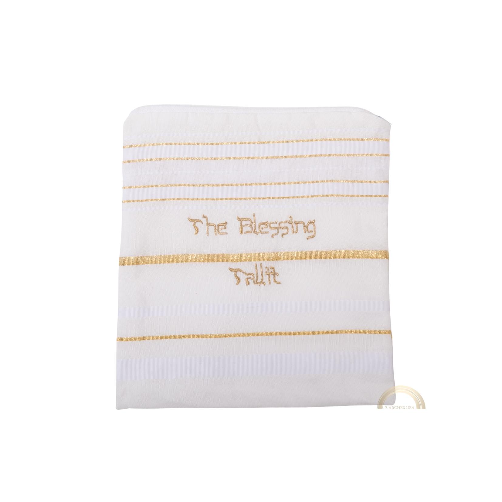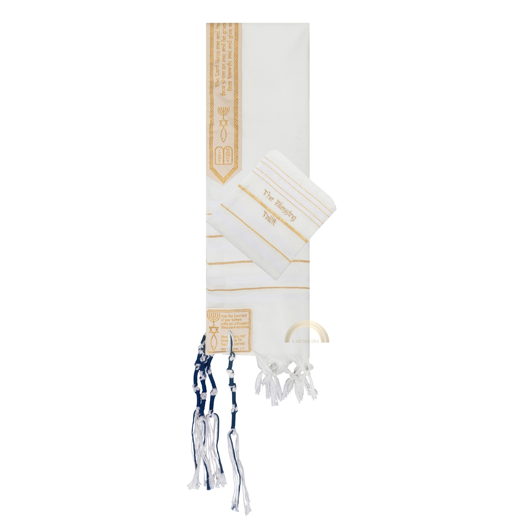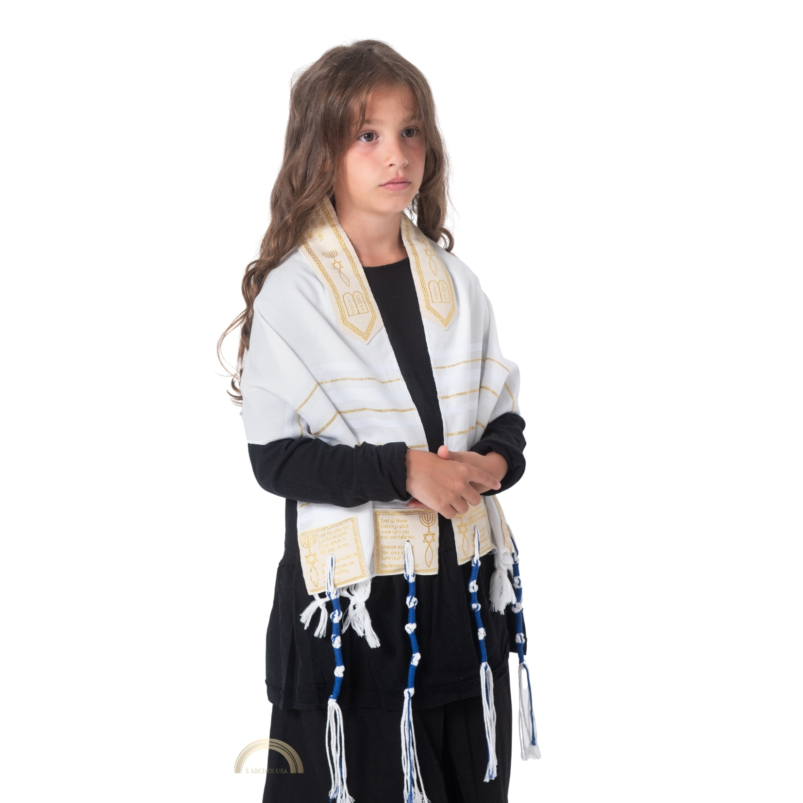 The Blessing Tallit Prayer Shawl For Children Christian – Small Tallit with Scriptures, Aaronic Blessing & Messianic Symbols (Gold/White)