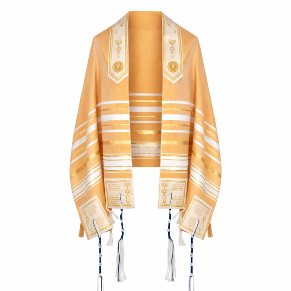 - Messianic Symbols – This tallit prayer shawl for women and men inspired by Jewish prayer shawl traditions, features ancient symbols on four corners with English scripture passages